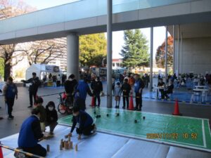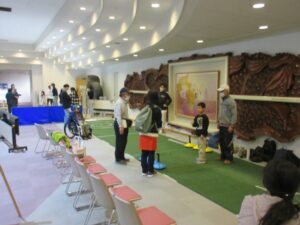 本会からは5名の指導者が参加し、ユニカールとモルックを行いました。小さいお子さん連れのご家族の参加が多かった印象ですが、7月の1回目と比べて参加人数が少なかったのは三連休の中日だったことが関係しているかもしれません。ユニカールのストーンは3kgあるので小さいお子さんには投げるのが難しく、投球ラインを前にしたり近くから押し出すような方法で皆さんに楽しんでいただきました。指導者の皆様大変お疲れ様でした。