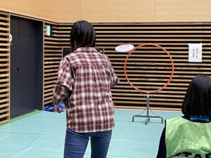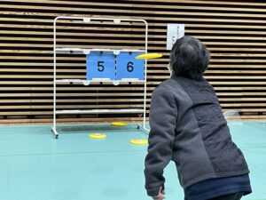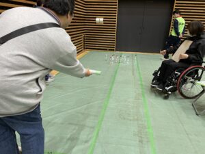 11月23日(日)10:00〜13:30まで、かみす防災アリーナにおいて体験会が(福祉祭りと同時)開催され6名の指導者が参加しました。また指導のボランティアとして一般企業の方々や高校生も多数加わってくれました。体験会に参加した方々は総数206名で、フライングディスク、ストラックアウト、ボッチャやモルックなどを楽しんでいただきました。